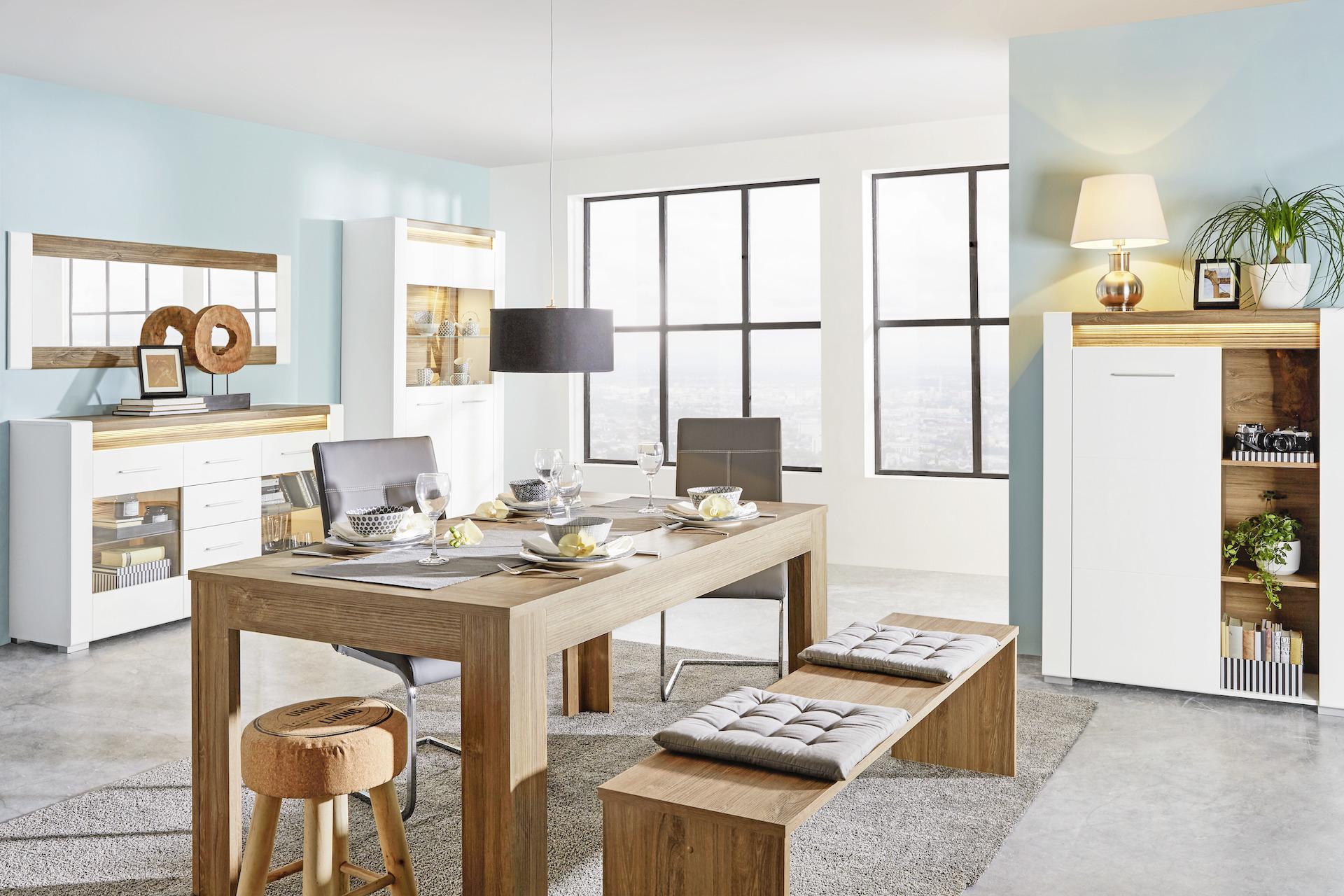 Stol, stolci, klupe, vitrine - sve to čini funkcionalnu blagovaonicu. Gotova rješenja za skladno opremljeno mjesto svakodnevnog obiteljskog okupljanja pronađite u mömaxu. Od klasičnog drvenog do modernog bijelog namještaja - imamo nešto za svačiji ukus.